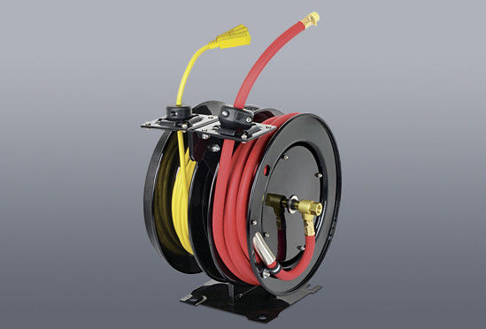 • Combination spring driven air hose/electric cord reel is two reels in one